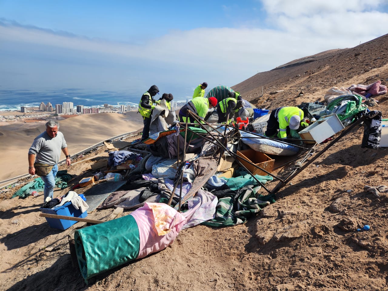 En el marco de los operativos de recuperación de espacios públicos, la Municipalidad de Alto Hospicio, a través de su Dirección de Seguridad Pública y el Departamento de Seguridad Ciudadana, en coordinación con la Dirección de Aseo y Ornato, intervino el sector de avenida circunvalación al costado de la ruta A-16, retirando 60 toneladas de escombros, equivalentes a tres camiones de 20 m³.