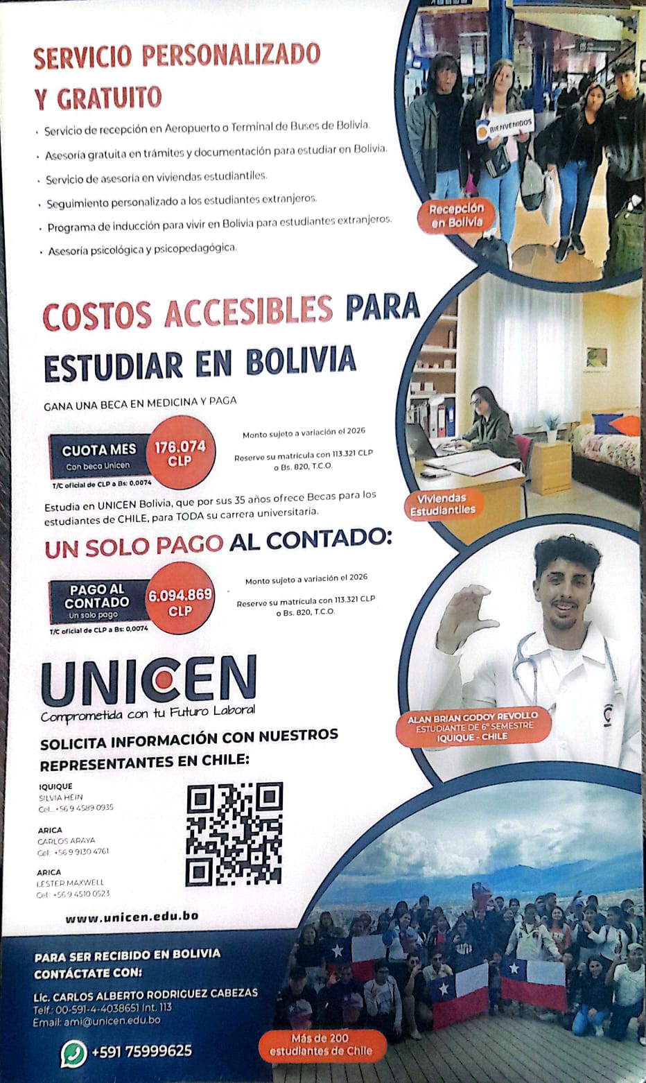 Finalmente, los voceros recalcaron que la charla de este viernes en Iquique busca entregar información directa y personalizada sobre carreras, costos, proceso de admisión y vida universitaria en Bolivia. “Es una coyuntura favorable, tanto económica como académica, para que más jóvenes chilenos accedan a estudios superiores de calidad”, afirmaron.