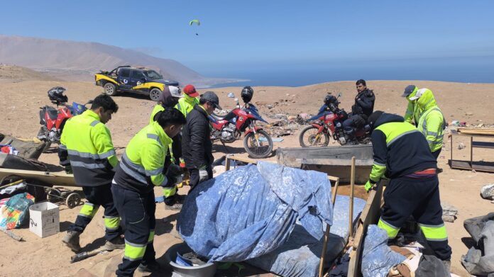 La intervención culminó con el retiro de rucos y toneladas de basura y escombros en los faldeos de cerros cercanos a la Ruta A-16 y en avenida Los Cóndores, sector aledaño al supermercado Acuenta.