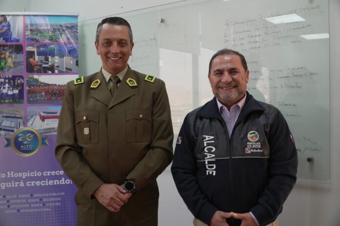 El alcalde de Alto Hospicio, Patricio Ferreira, recibió en un encuentro protocolar al nuevo Jefe de la Primera Zona de Carabineros de Tarapacá, general Adrián Andrades, en dependencias de la sala de alcaldía del municipio.