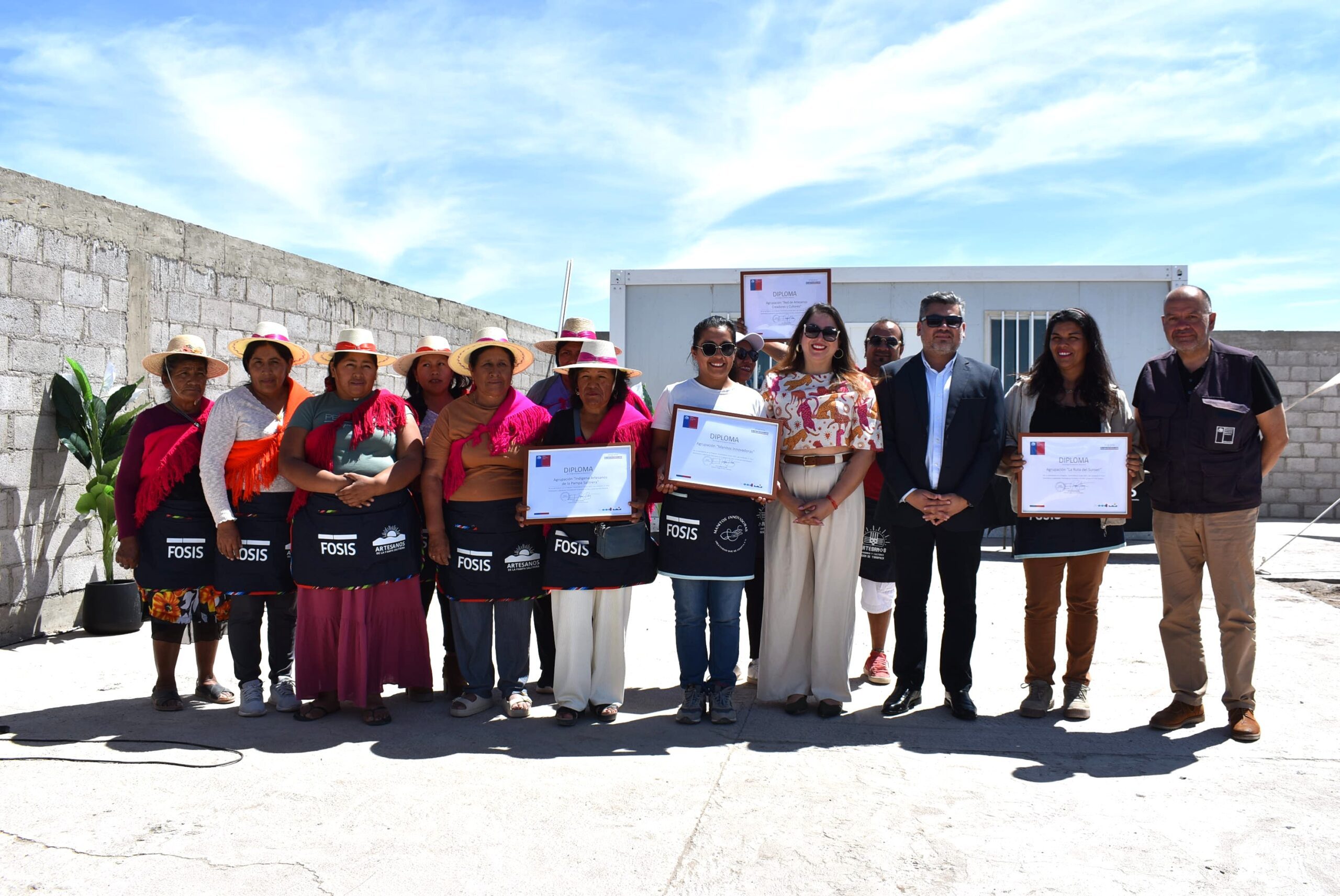 Con el objetivo de seguir fortaleciendo el trabajo colaborativo y el desarrollo de los emprendimientos locales, el Fondo de Solidaridad e Inversión Social (FOSIS) Tarapacá realizó una significativa ceremonia de certificación y cierre del Programa Emprendamos Grupal, instancia en la que además se inauguró una nueva oficina modular destinada a la Agrupación Indígena de Artesanas de la Pampa del Tamarugal, en la comuna de Pozo Almonte.