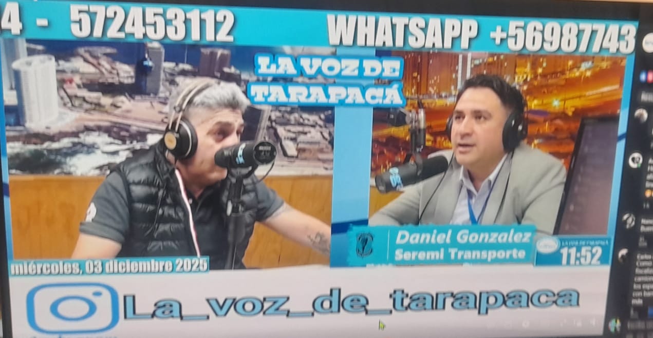 El programa La Voz de Tarapacá de Radio La Mega 102.7 recibió en el estudio al recién asumido seremi de Transportes y Telecomunicaciones de la región de Tarapacá, Daniel González Cáceres, quien realizó su primera visita al espacio para informar sobre las acciones que la cartera ejecuta frente a la compleja situación vial que enfrenta la región.