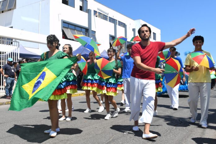 Finalizada la ceremonia en la casa edilicia, las agrupaciones folclóricas protagonizaron un pasacalle por las principales avenidas de la ciudad, mostrando su música y bailes tradicionales. El recorrido concluyó en la explanada del Gimnasio Techado Municipal, donde un gran número de personas disfrutó de la presentación artística de los ocho países participantes.