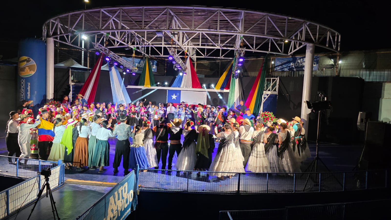 En la jornada final, delegaciones provenientes de Paraguay, Colombia, Argentina, Bolivia, Brasil, Perú, Palestina y Chile deslumbraron al público con coloridas presentaciones de danzas y vestuarios tradicionales, reflejando la riqueza cultural de sus pueblos y los lazos que unen sus expresiones artísticas.